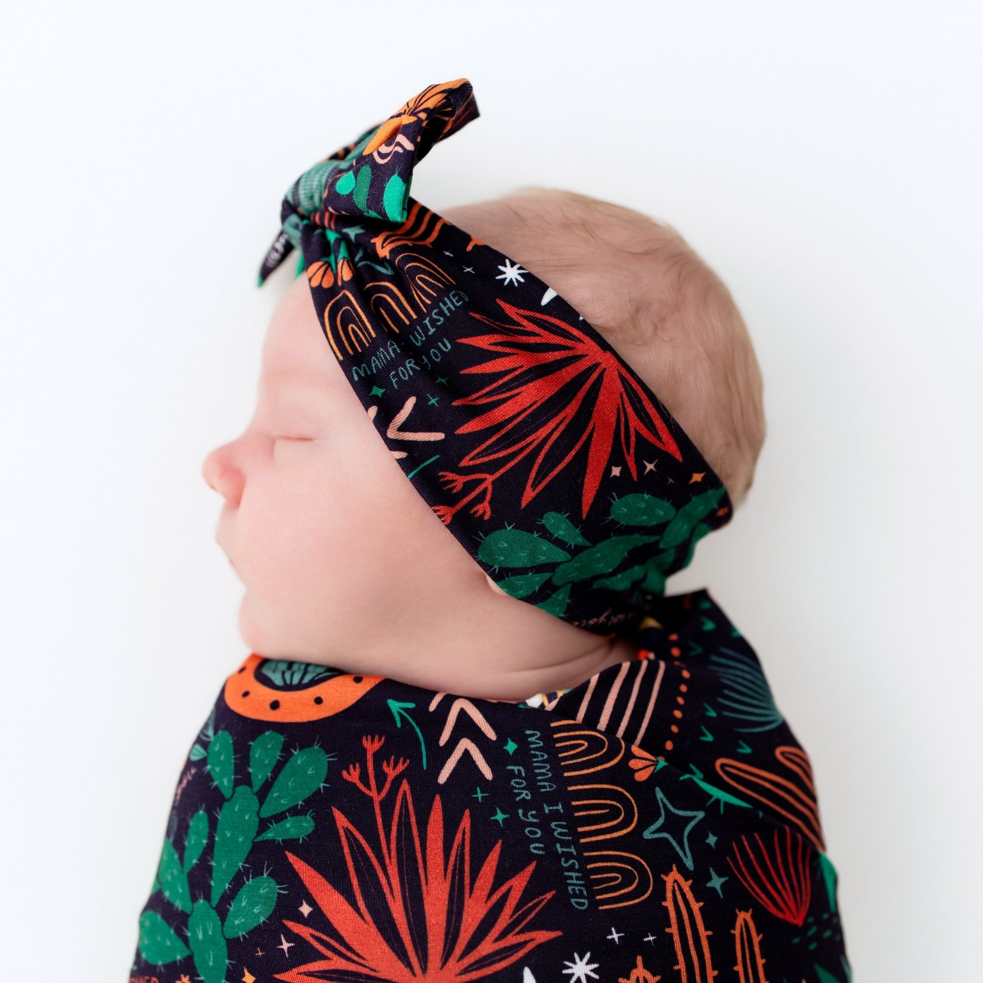 This bamboo head-wrap bow was made with mama in mind. Designed to match our hand-drawn, joy-sparking prints, each baby bow head-wrap adds a sweet finishing touch without the scratchiness or tight squeeze of traditional bows.