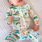 This footie zippered one piece was made with mama in mind. Our bespoke, hand-drawn prints are crafted into buttery soft baby pajamas to comfort a tired and struggling mama and spark some joy in her day.